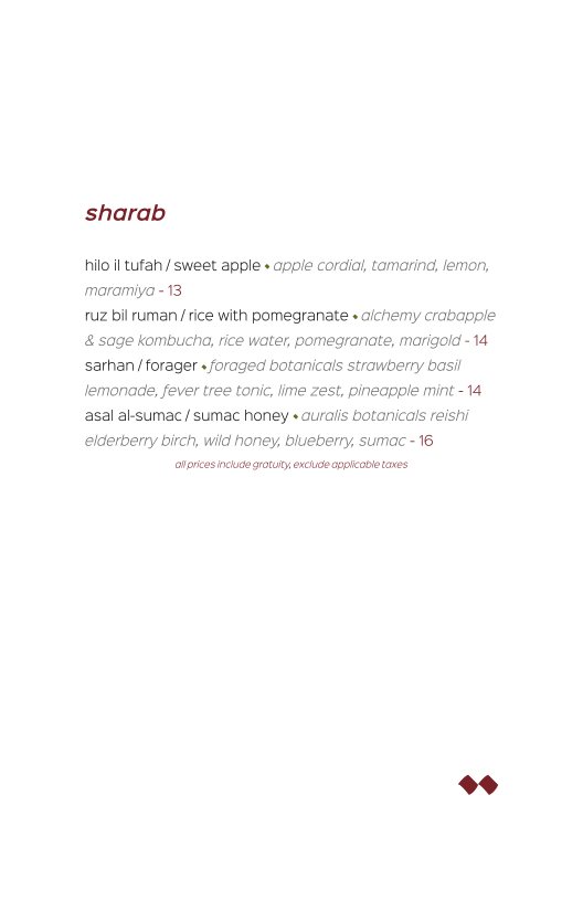 alchemy crabapple & sage kombucha, rice water, pomegranate, marigold